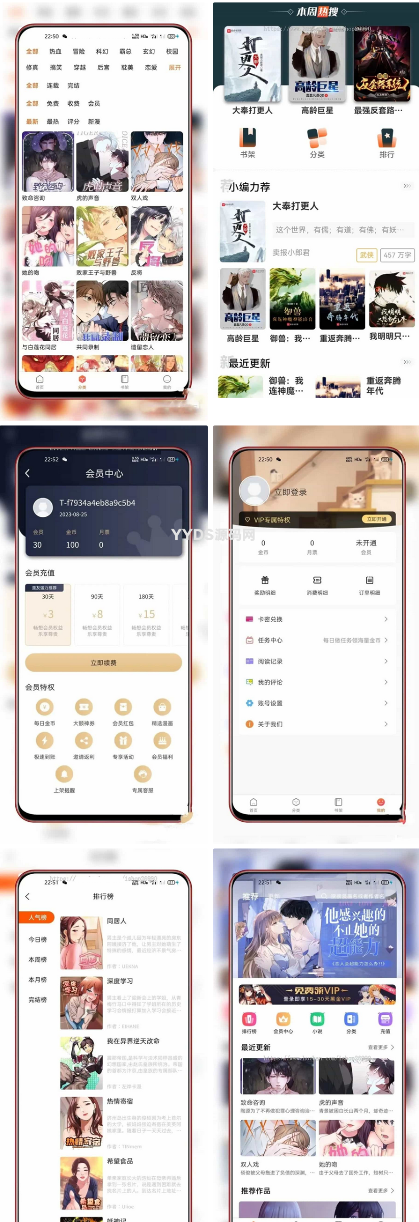 YM162-全新uniapp小说漫画APP小说门户源码 会员阅读/月票功能