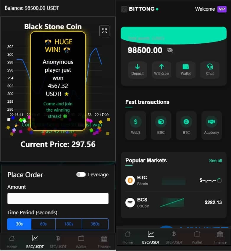 BitTong虚拟货币微交易投资理财源码/现货交易+杠杆交易+完美K线控制+输赢控制+代理/前端html+后端PHP