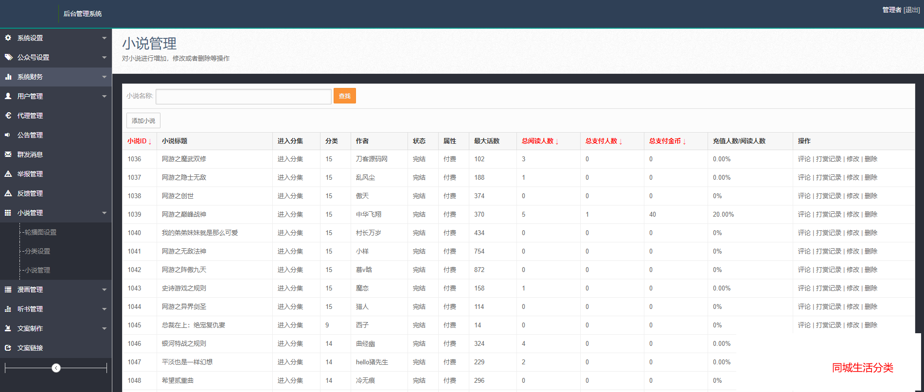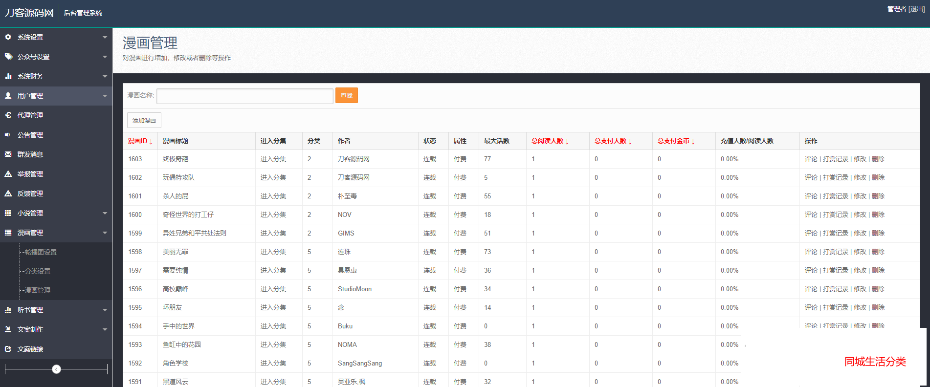 很多的站长都在找的源码,外面无错的也都卖到几K的,这里分享出来,并且修正了一些bug,可以链接一个第三方的影视站点(电影类的论坛发布了不少自己再搭建一个就可以),并且该小说、漫画、听书聚合手机网站还带有打赏功能,试看功能,接入第三方的支付。
