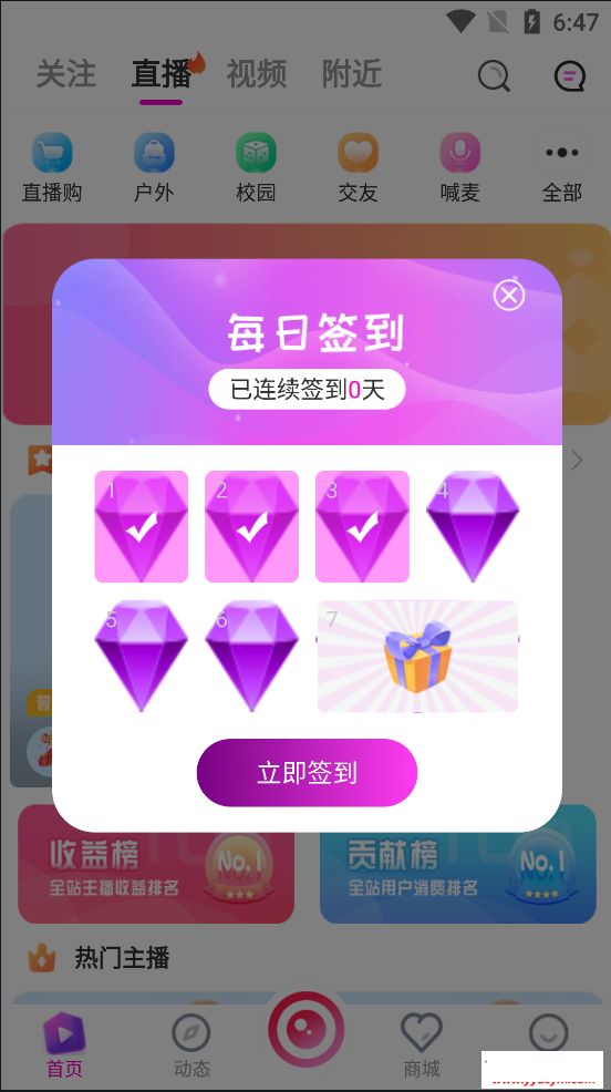4.每日在线任务,直播间红包,直播连麦,直播pk,会员靓号坐骑