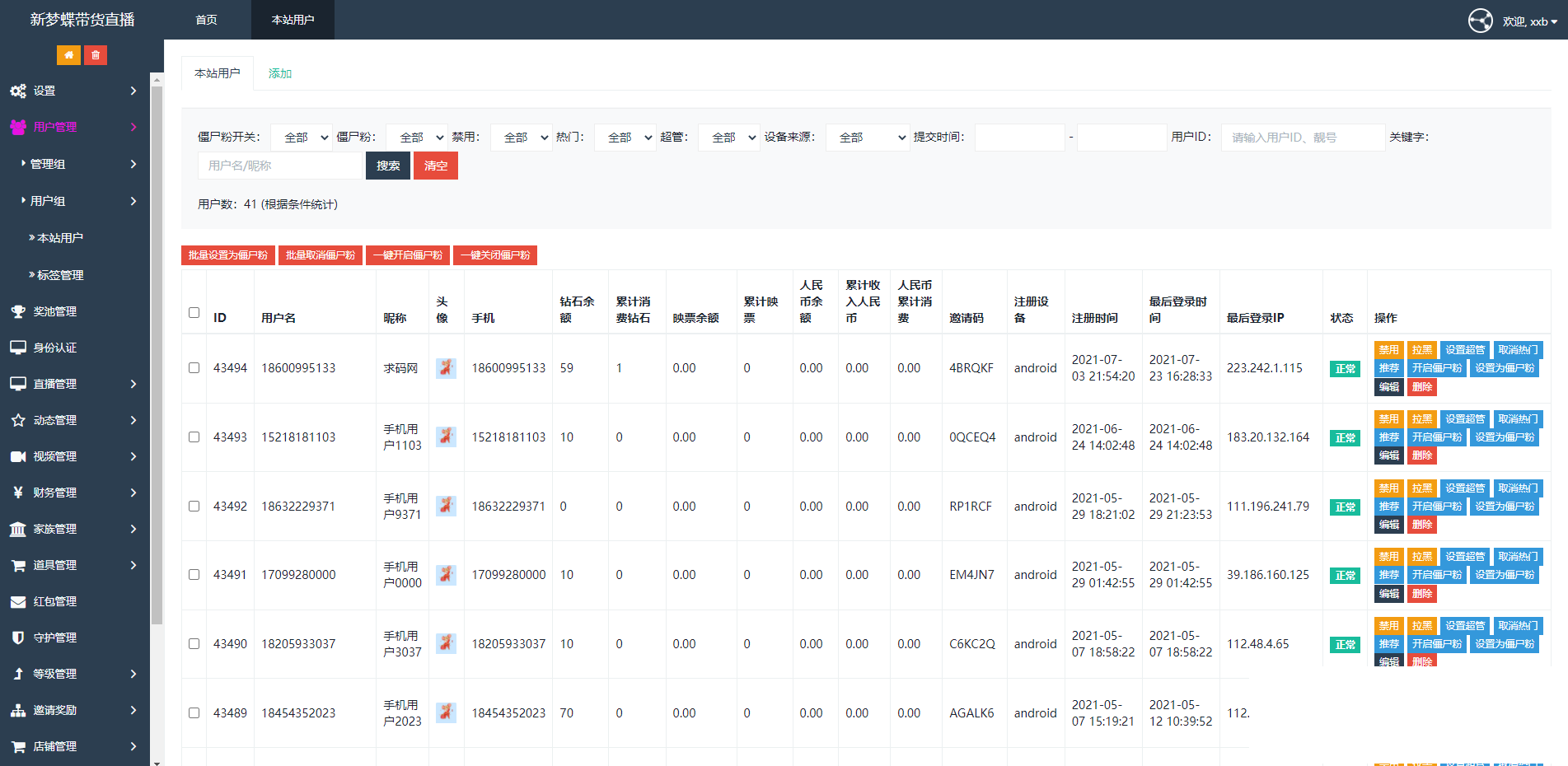 2.可设置强制邀请码选项 直播房间脏字敏感词过滤