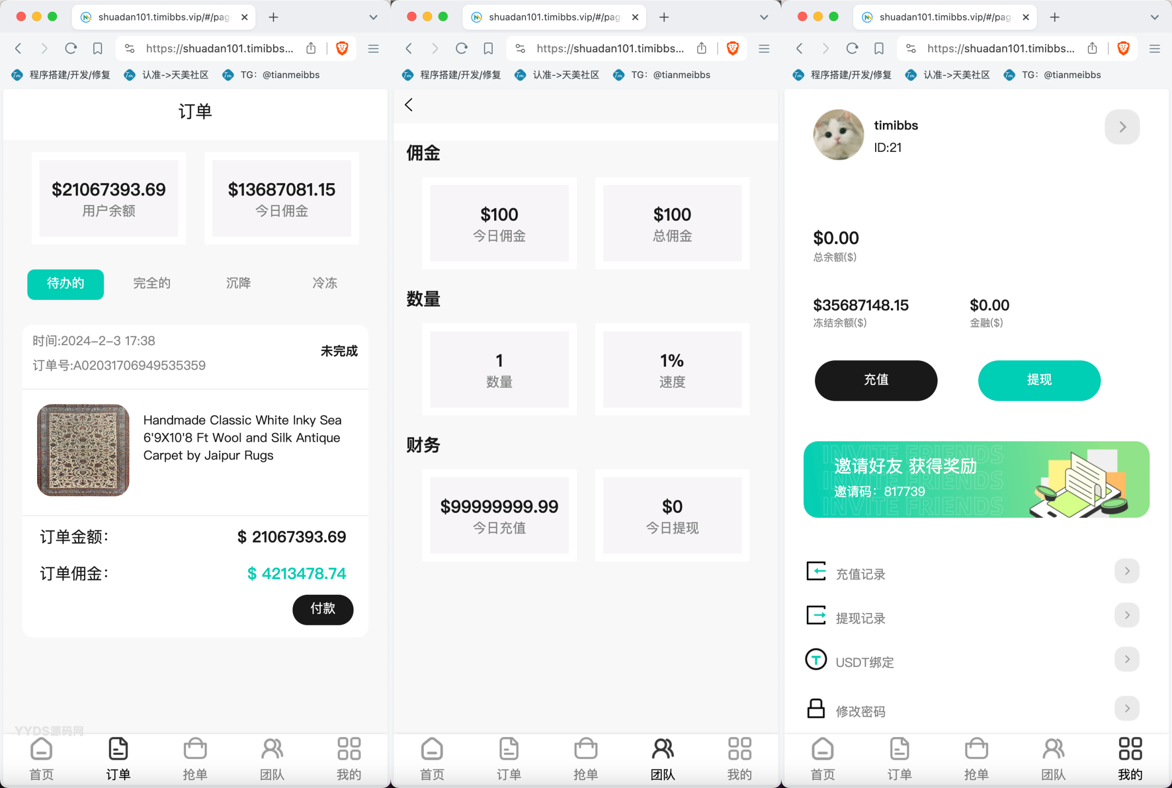 YM74-海外任务刷单抢单商城源码/叠加分组+完美控杀+代理分销/前端uniapp后端PHP
