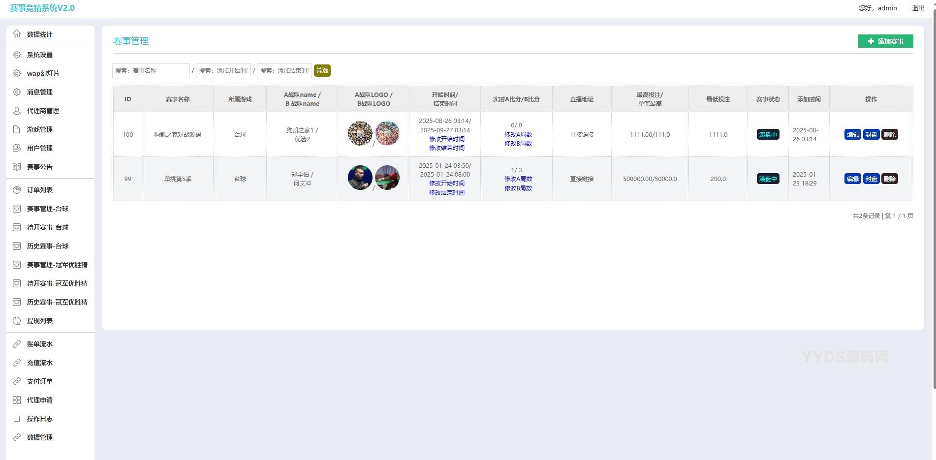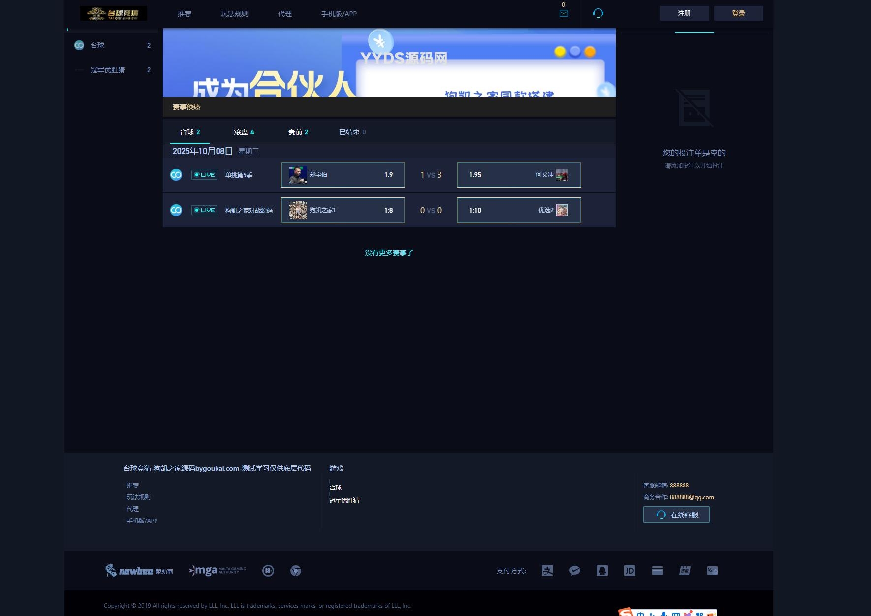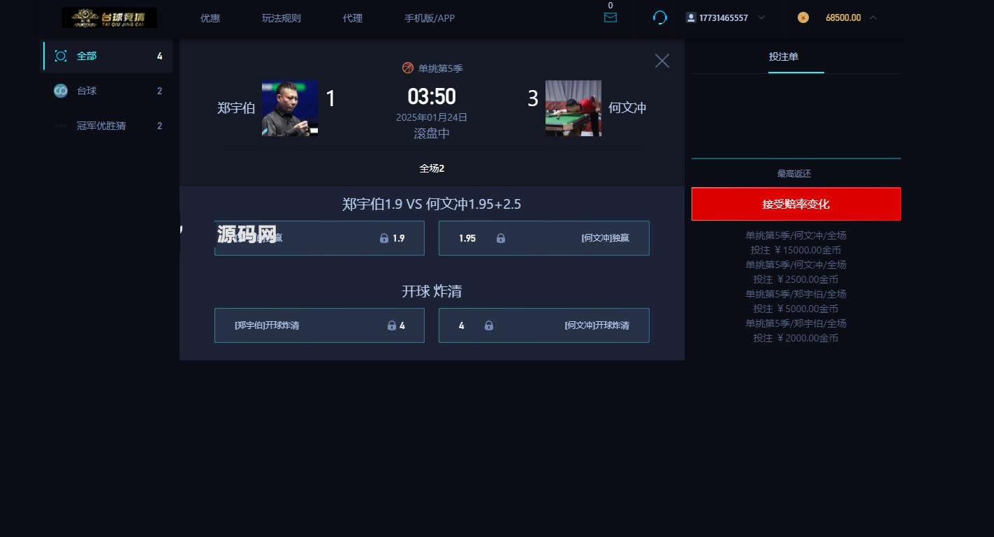 YM85-游戏胜负竞猜系统源码/台球有奖竞猜/自定义赛事/冠军优胜猜