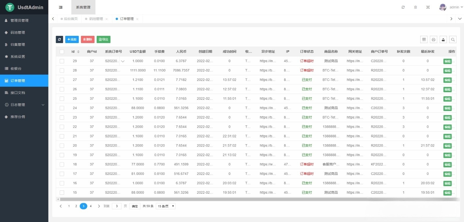 系统配备了功能全面的后台管理面板,管理员可以通过Web界面轻松掌控整个支付业务的运营。主要管理功能包括:用户管理模块,可查看所有注册用户信息及其关联的分销关系网络;订单监控中心,实时展示每一笔充值、提币订单的详细信息、状态、交易哈希及时间,并支持手动补单等操作;分销设置模块,允许灵活配置各级分销佣金比例,并可查看详细的佣金发放记录;财务管理模块,提供资金流水总览、归集记录查询及钱包余额统计;系统配置模块,用于设置API回调地址、节点服务商密钥、手续费率、提现审核规则等关键参数。所有操作均记录日志,便于审计与排查问题。