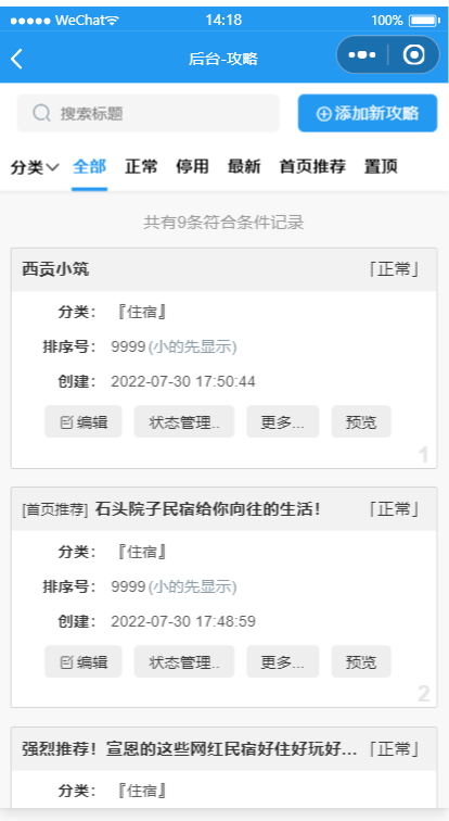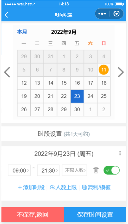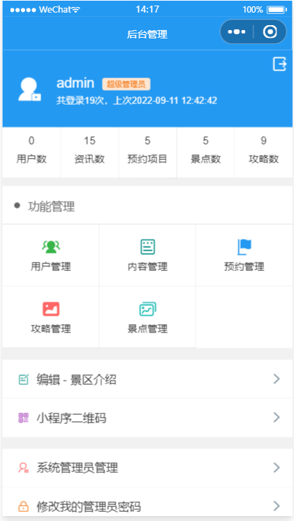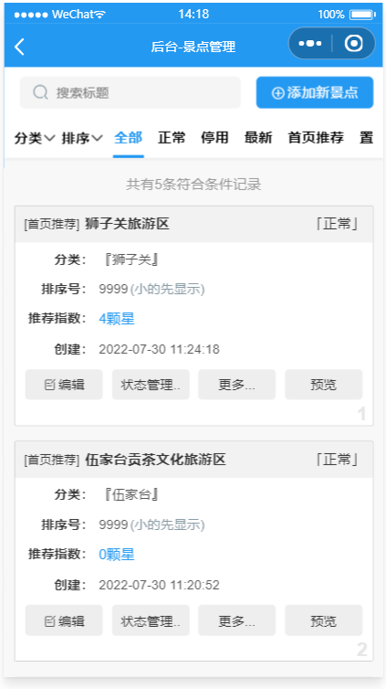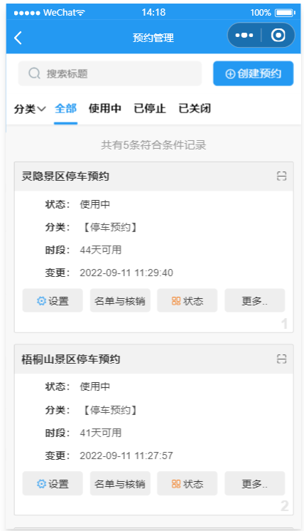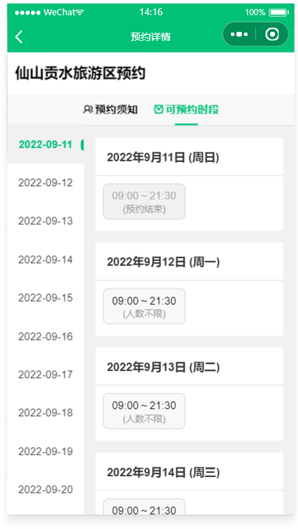 - 景点预约管理:开始/截止时间/人数均可灵活设置,可以自定义客户预约填写的数据项