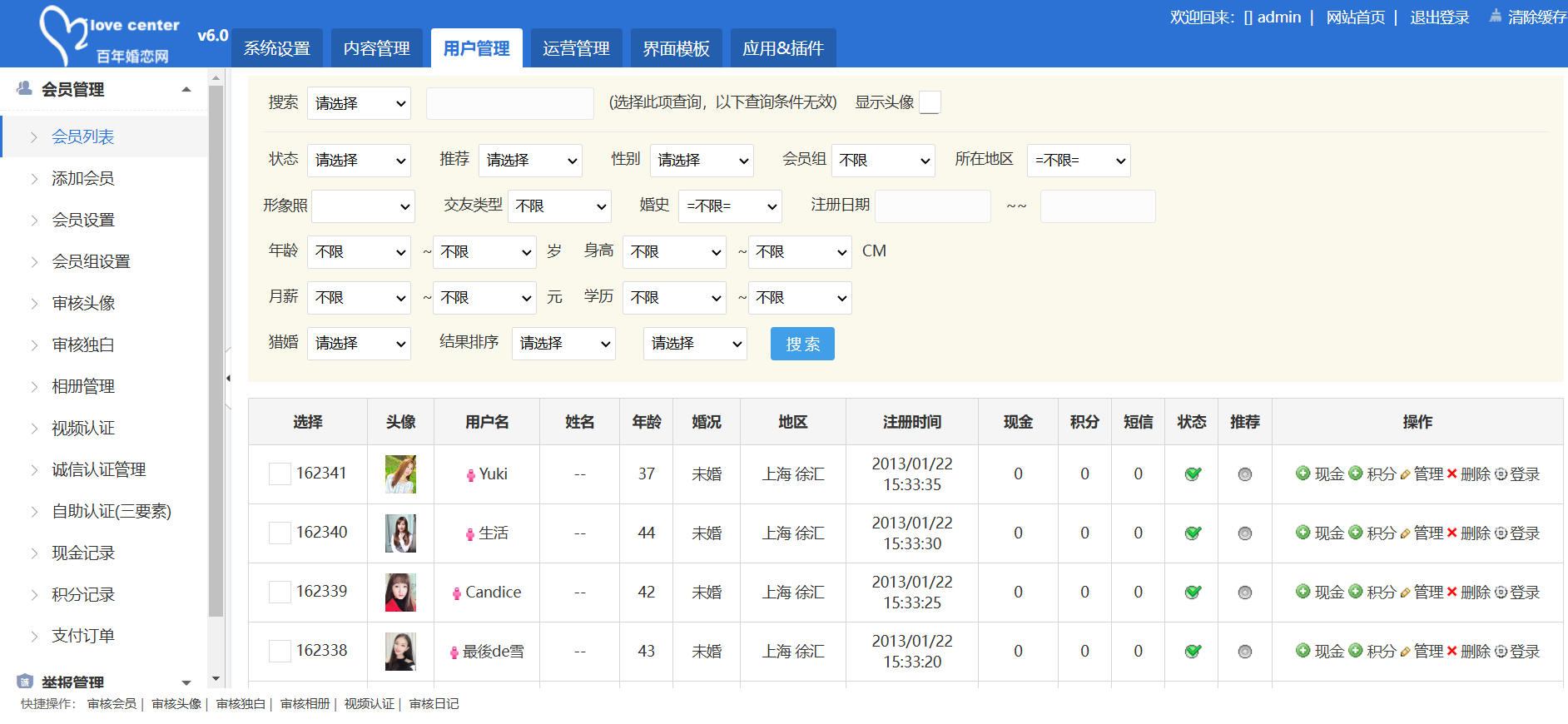 admin APP源码 信息管理 婚恋交友 2025-12-20 YM30手机版和电脑版婚恋交友系统源码,可打包app的交友婚恋源码,功能强大,界面漂亮婚恋交友源码 手机版和电脑版婚恋交友系统源码,可打包app的交友婚恋源码,功能强大,界面漂亮婚恋交友源码 本系统已经过测试,代码完整含服务器端,和pc版和手机版。 手机版界面: pc界面: 后台: 暂无优惠当前隐藏内容需要支付2500积分已有0人支付 支付查看 RIPRO主题是一个优秀的主题,极致后台体验,无插件,集成会员系统2026年优质php源码下载 » YM30手机版和电脑版婚恋交友系统源码,可打包app的交友婚恋源码,功能强大,界面漂亮婚恋交友源码