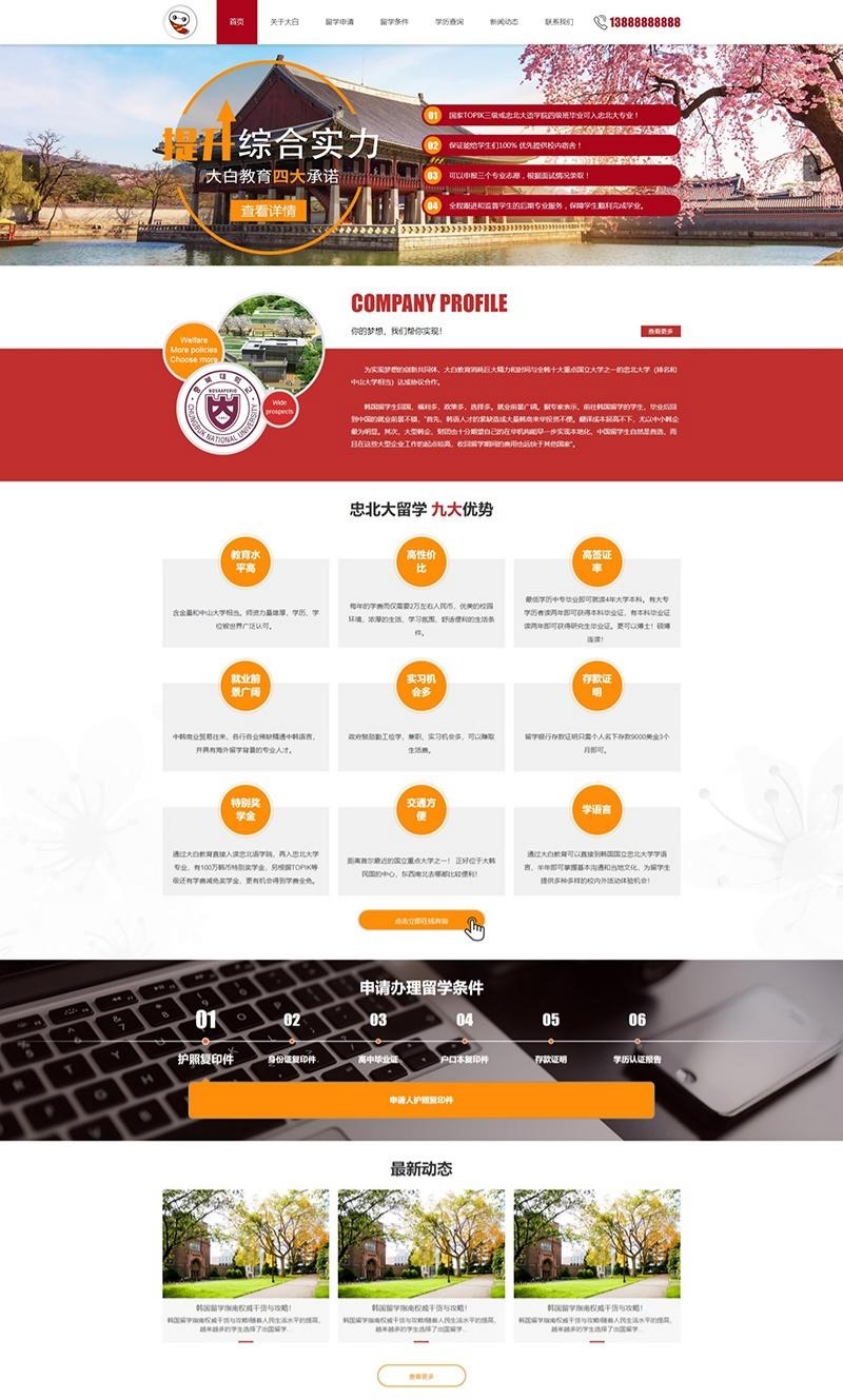 本系统是一款基于CMS内核深度定制开发的企业级网站模板,专为红色教育、留学咨询、文化培训及企业宣传类机构量身打造。该模板旨在帮助相关机构快速构建一个专业、大气、富有文化内涵的品牌官方网站,有效解决品牌线上展示、课程服务推广、客户在线咨询以及文化理念传播等核心需求。其采用经典的红色作为主视觉色调,寓意积极、热情与专业,能够迅速建立用户信任感并传递品牌价值,是教育咨询机构进行数字化形象建设的得力助手。