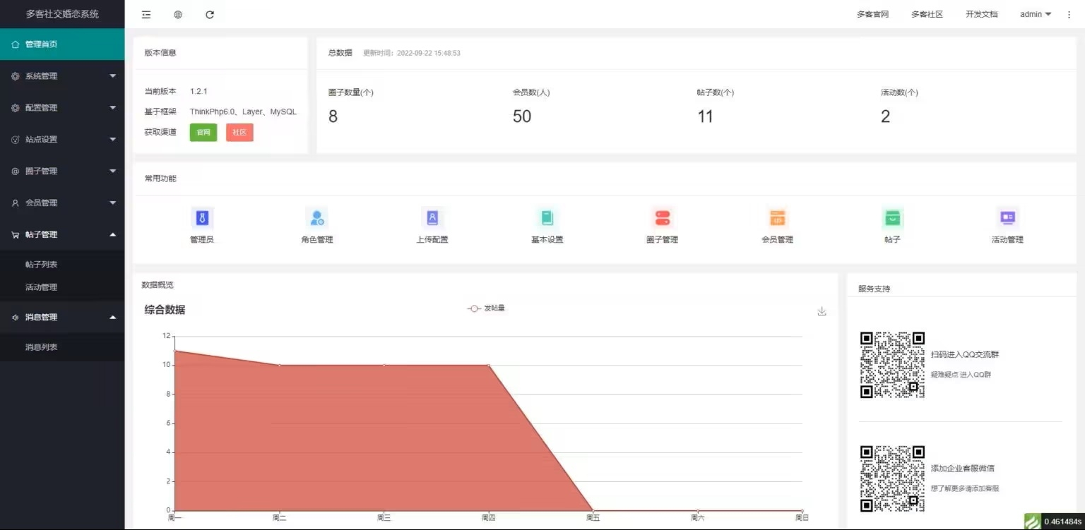 系统基于TP6+uni-app框架开发;客户移动端采用uni-app开发,管理后台TH6开发。