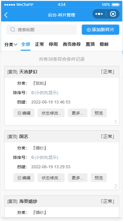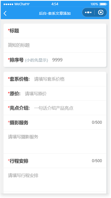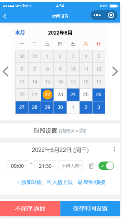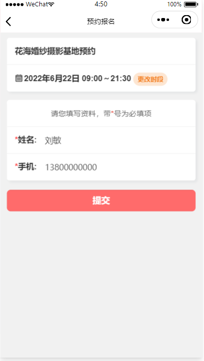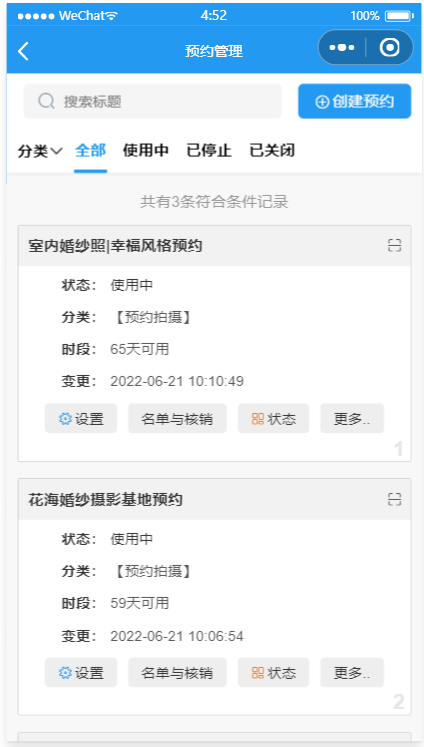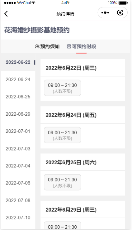 拍摄预约管理:开始/截止时间/人数均可灵活设置,可以自定义客户预约填写的数据项