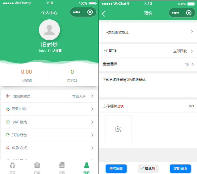 admin 公众号|小程序 垃圾回收 2026-01-17 YM391- 2026年PHP废品回收小程序,垃圾分类回收小程序源码 废品回收,本站长近期也打算在本地运营一个收废品小程序,喜欢的站长可以下载 后期更新会直接升级 暂无优惠当前隐藏内容需要支付2500积分已有0人支付 支付查看 RIPRO主题是一个优秀的主题,极致后台体验,无插件,集成会员系统2026年优质php源码下载 » YM391- 2026年PHP废品回收小程序,垃圾分类回收小程序源码