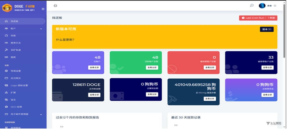 admin APP源码 投资理财 2026-01-19 YM424-php狗狗币DeFi矿场/DeFi区块链/流动性矿池/存币生息 简介: 全新PHP系统开发,支持添加多语言,默认是英文版,截图是浏览器自动翻译 独家狗狗币DeFi农场,只需要输入钱包地址即可存币生息 图片: 暂无优惠当前隐藏内容需要支付2000积分已有0人支付 支付查看 RIPRO主题是一个优秀的主题,极致后台体验,无插件,集成会员系统2026年优质php源码下载 » YM424-php狗狗币DeFi矿场/DeFi区块链/流动性矿池/存币生息