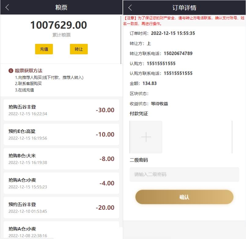 一:五谷生金有五个稻场,严格控单抢单模式,抢到可以得到持仓溢价收益!抢到就是赚到,小伙伴们加油!