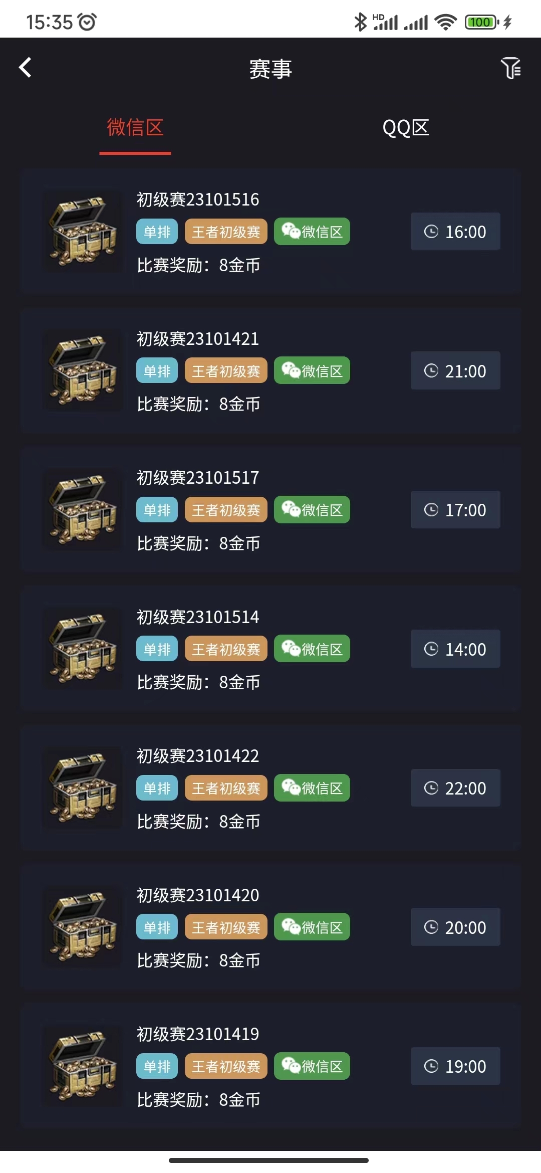 金币赛、赏金赛、vip赛等种赛事