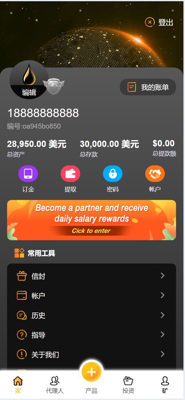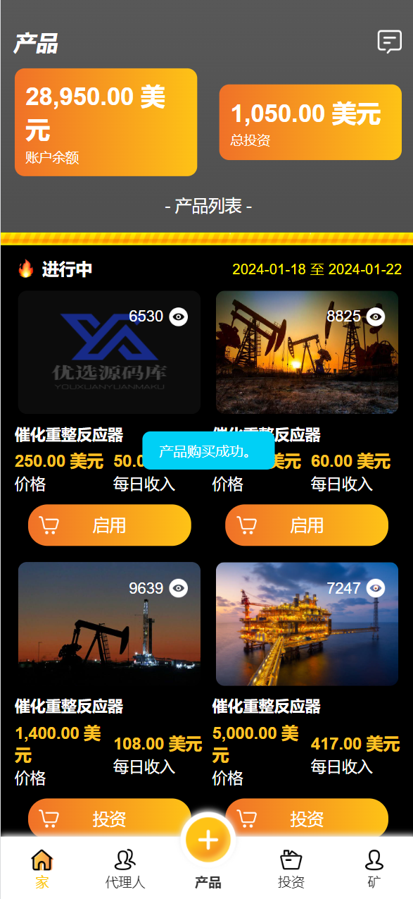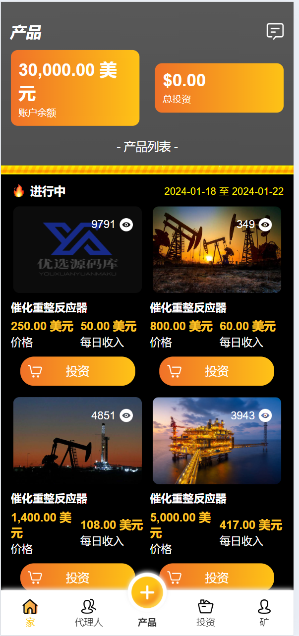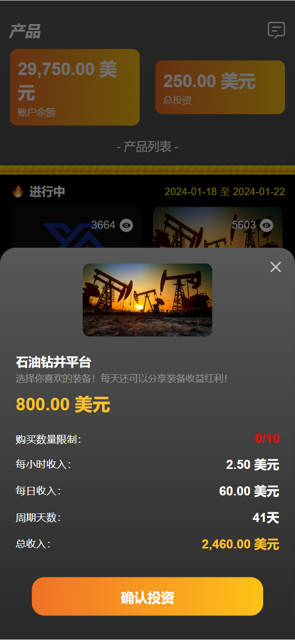 海外海上石油钻井平台共享投资理财源码/原油投资理财源码 支持 代理 分佣 回扣返利等等功能