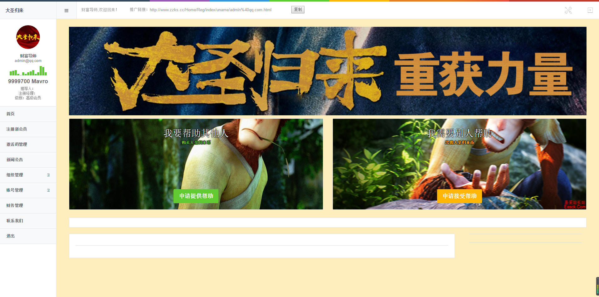 YM650-PHP开发的大圣归来理财系统3M源码、MMM金融互助平台源码、理财系统PHP源码下载