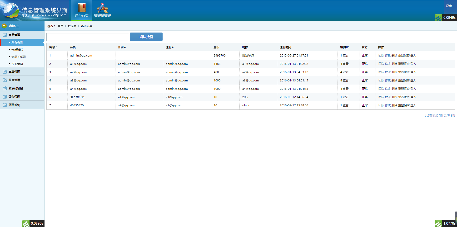 3.前台测试用户名:admin@qq.com 密码:admin