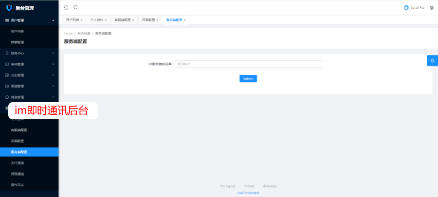 后台管理:数据总览,系统配置,客户端配置,服务端配置,用户管理,角色管理,群组管理,单聊管理,红包管理,系统账单管理等等功能管理功能。